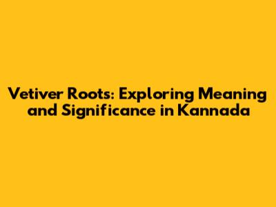 The Essence of Vetiver in Kannada: What Does 'Vettiveru' Mean?