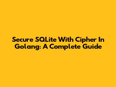 Secure SQLite With Cipher In Golang: A Complete Guide