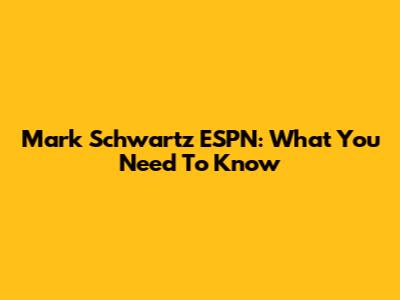 Mark Schwartz ESPN: What You Need To Know