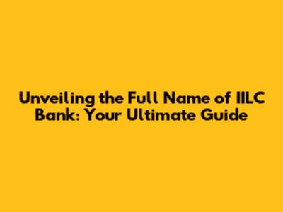 Decoding IILC Bank: The Full Name Revealed