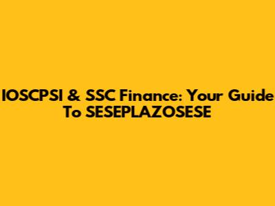 IOSCPSI & SSC Finance: Your Guide To SESEPLAZOSESE