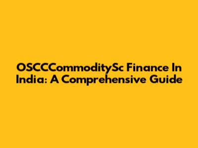 OSCCCommoditySc Finance In India: A Comprehensive Guide