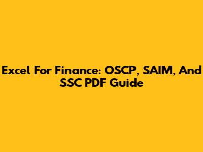 Excel For Finance: OSCP, SAIM, And SSC PDF Guide