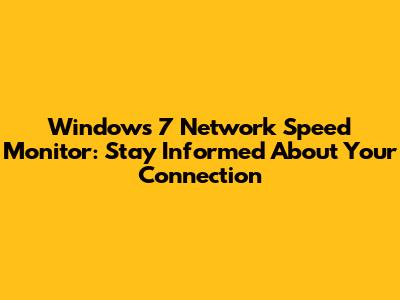 The Need for a Windows 7 Network Speed Monitor