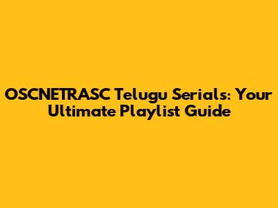 OSCNETRASC Telugu Serials: Your Ultimate Playlist Guide